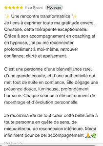 Cette séance est un espace dans lequel tu peux me poser ta problématique, et pendant une heure , je vais t'aider à plonger en toi, mettre en lumière des croyances limitantes, des freins inconscients, pour t'amener à débloquer ta situation et briser des chaînes invisibles qui t'empêchent d'avancer.